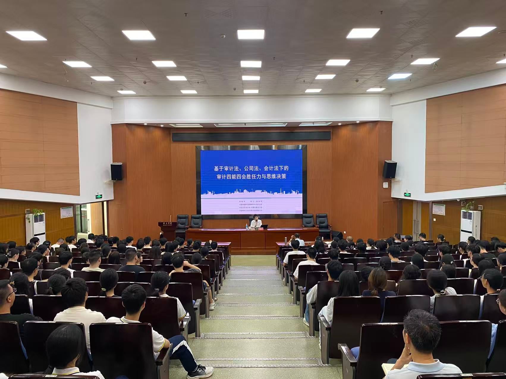讲座上,周敏李围绕审计法规与政策、理论与实务、学业与职业展开了系统的讲解。一是结合习近平总书记在二十届中央审计委员会第一次会议上的重要讲话精神,深刻解读了新征程审计工作的政策背景与时代要求;二是结合主持或参与的众多中央企业审计案例及科研课题,对“审计四能四会胜任力与思维决策”展开了深入浅出的讲解;三是结合丰富的实务经验与个人成长经历,为会计专业员工的学业规划与职业选择提供了宝贵的建议。