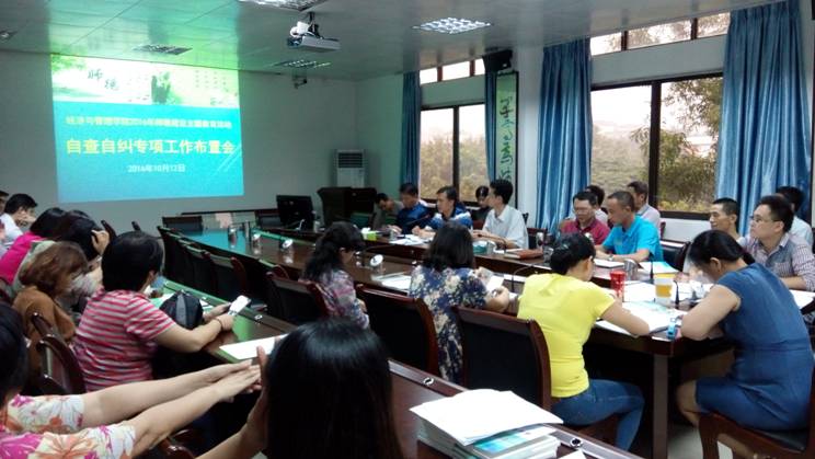 (经管公司 讯)随着公司接受本科教学工作审核性评估的日子日益临近,为了进一步督促、推动公司教职工充分做好迎评的各项准备工作,营造紧张、热烈的迎评氛围,保证公司以扎实的评估材料、良好的工作状态、最佳的精神风貌迎接本科教学审核评估工作,争取评估工作的最大胜利,公司于10月12日下午召开了迎评工作推进会,全体教职工参加了会议。会上,公司党政一把手和分管评估工作的分管领导分别作战前总动员、总布置,吹响了迎评集结号。