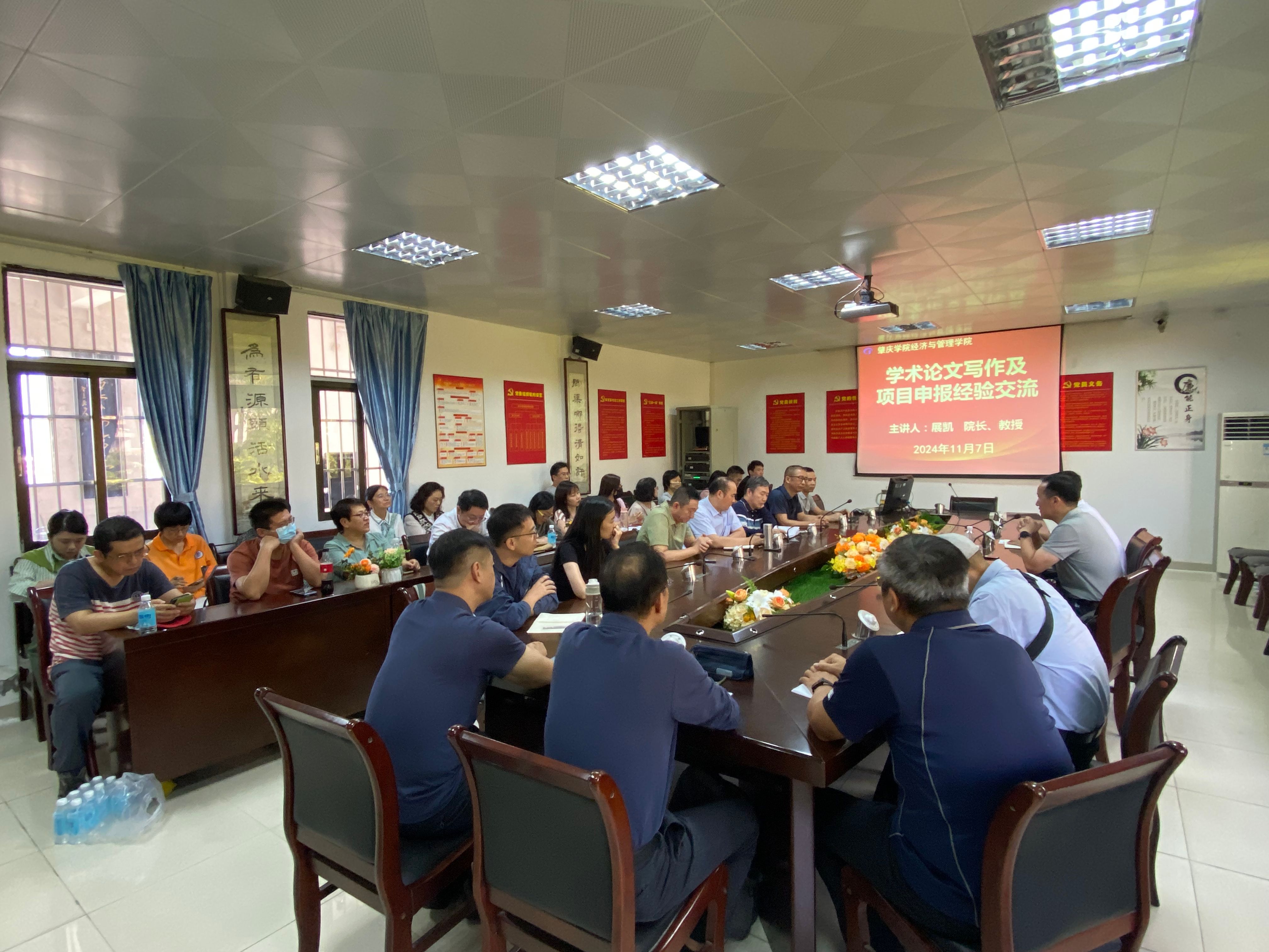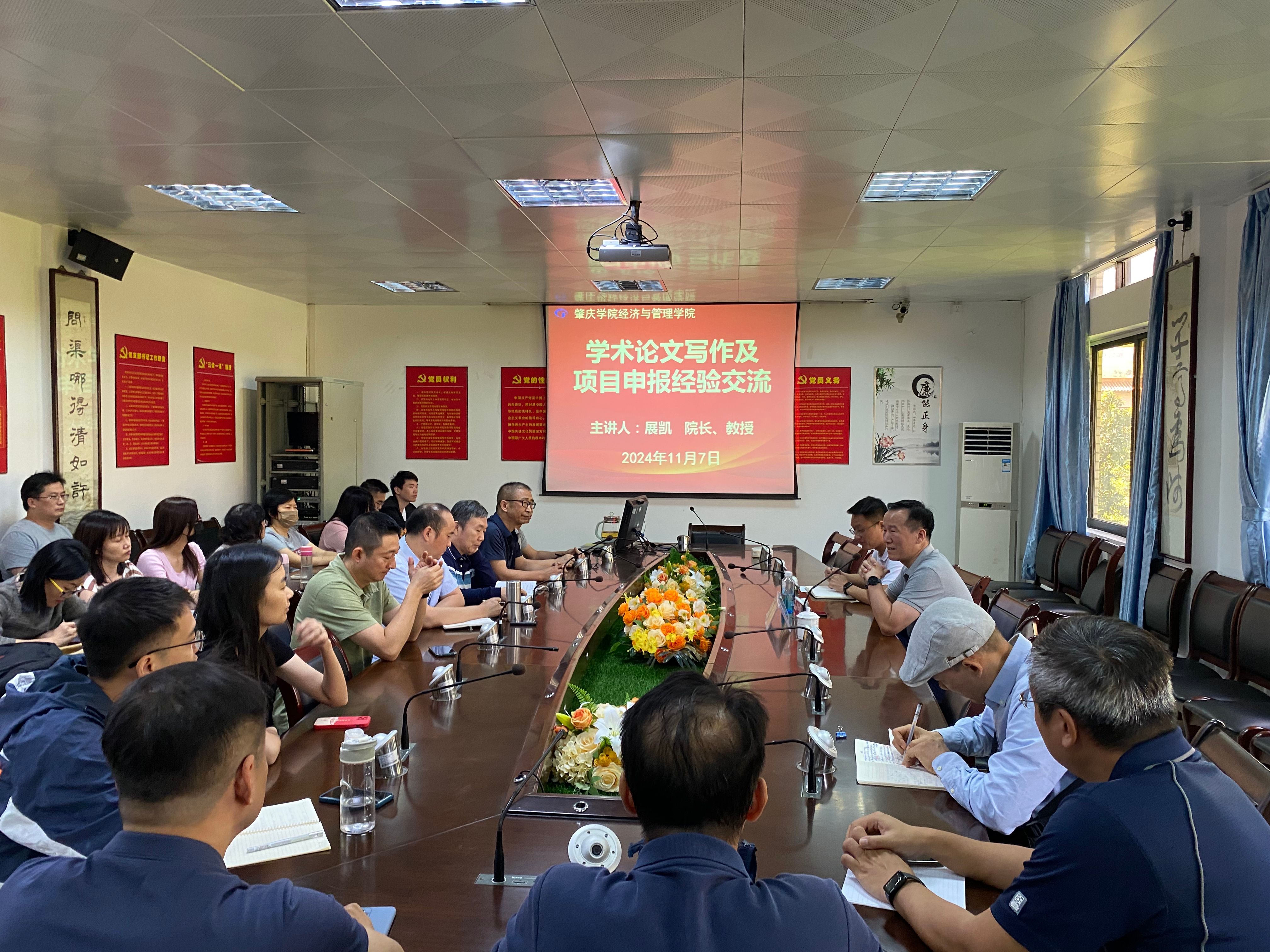 2024年11月7日,EMC易倍邀请广东外语外贸大学金融公司经理展凯教授来院与中青年教师作“学术论文写作及项目申报”经验交流。交流座谈会由周长锋博士主持。
