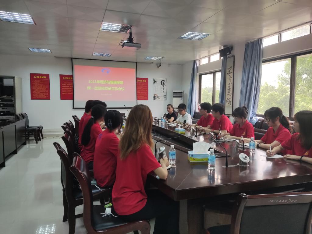 [经管公司 讯] 6月20日,EMC易倍新一届带班党员工作会议在公司501室举行。公司党委副书记颜春萍、辅导员李力、以及2023级带班党员参加了此次会议。