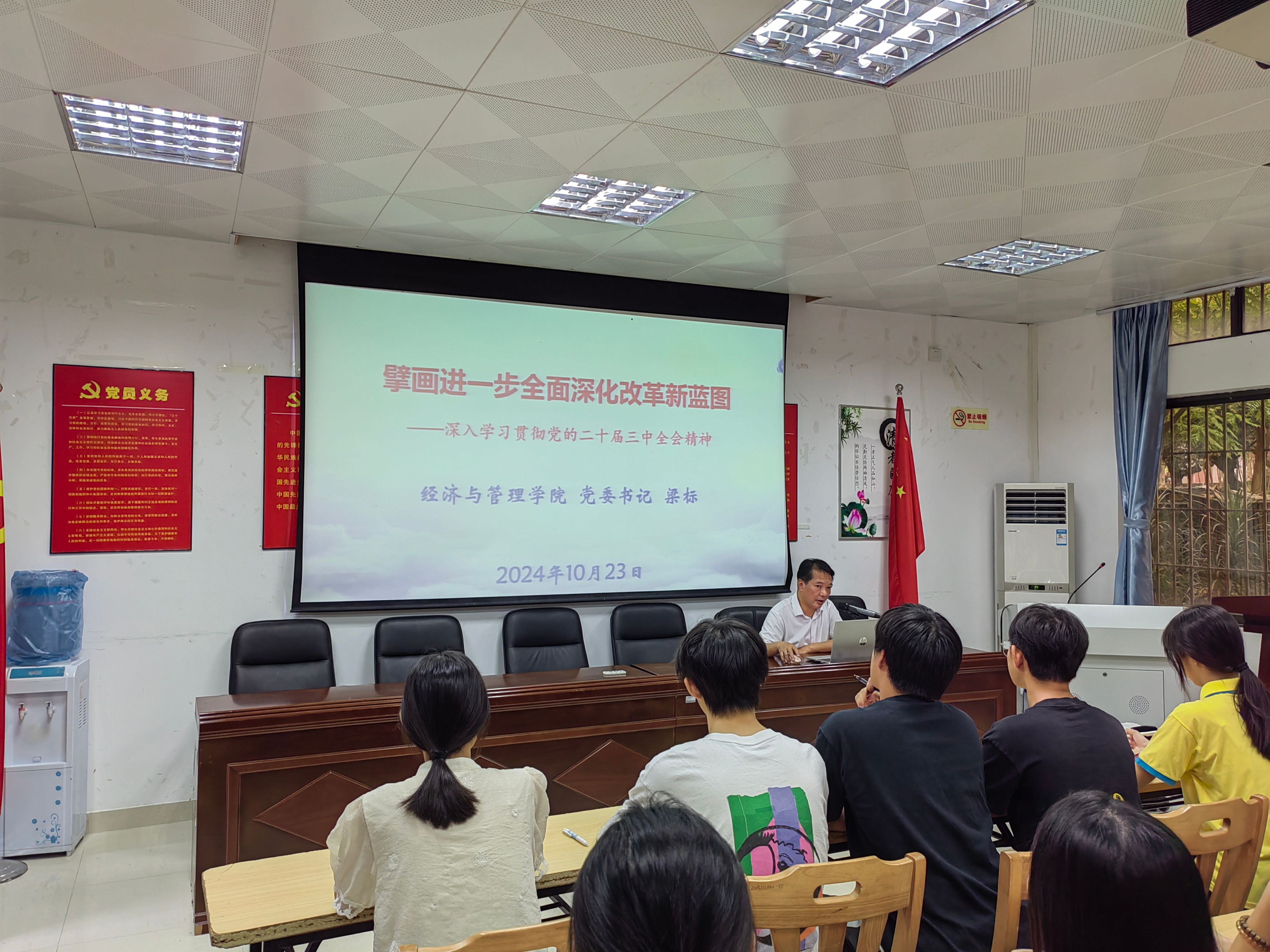 课上,梁标书记从党的二十届三中全会的重大意义和主题展开讲解,详细阐述了进一步全面深化改革的必要性和紧迫性,通过分析具体案例阐述了进一步全面深化改革的新思想、新观点、新论述,改革的思路、部署与内蕴特质,以及经济体制改革的重点方面等。他强调,要坚持党中央对进一步全面深化改革的集中统一领导,深入贯彻落实全会精神,保持战略定力,弘扬实干精神,把准方向、守正创新、久久为功,把进一步全面深化改革的战略部署落到实处。同学们也纷纷表示,将努力学习,不断提升自己的专业素质和综合能力,积极投身到进一步全面深化改革的伟大实践中去。