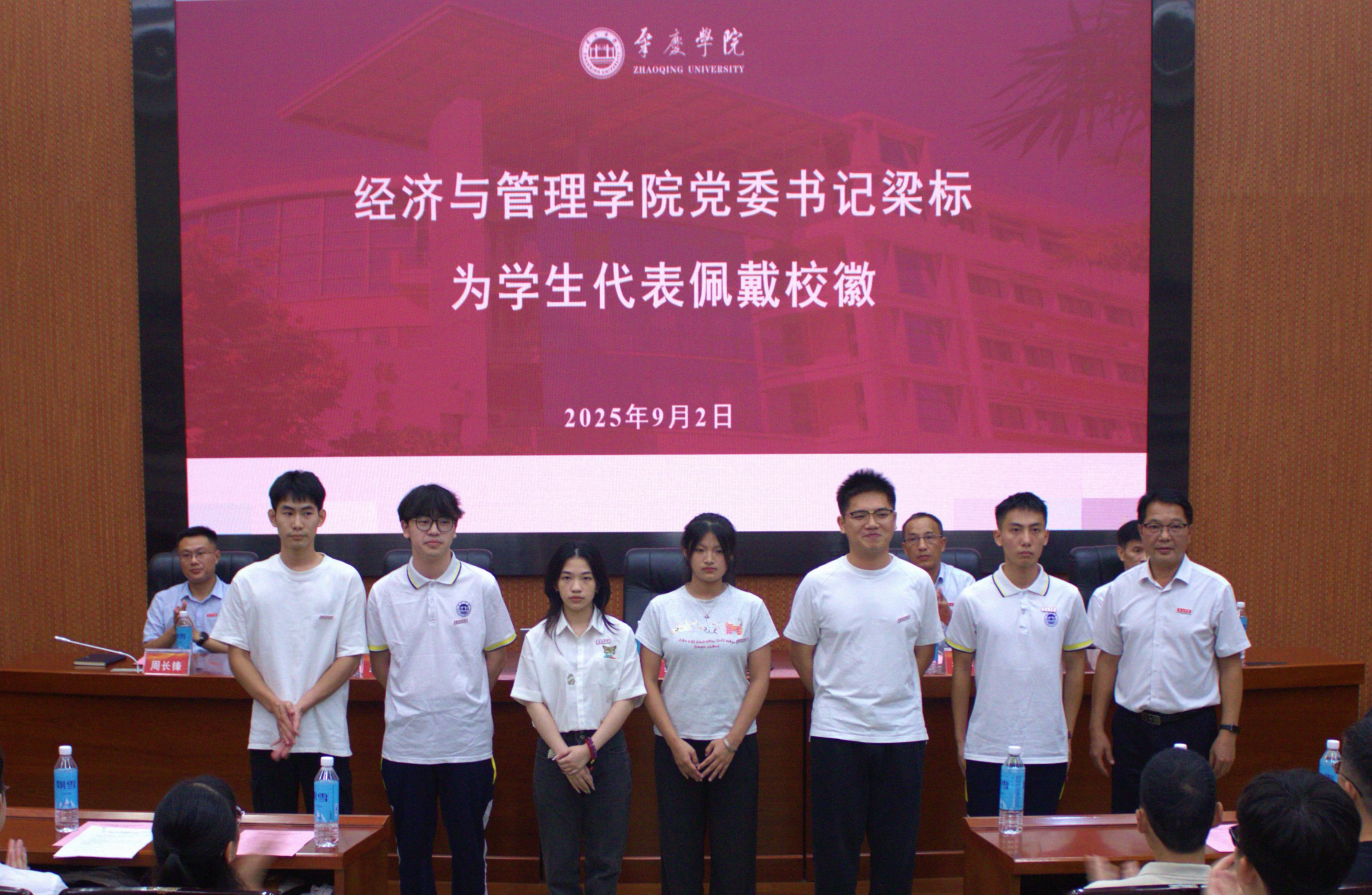 梁标书记为新生代表颁授了EMC易倍校徽。他强调校徽不仅是一个标识,更是一份责任与传承,希望新同学在新征程上要练就过硬本领,提高自身素质,努力成长为“有知识、有能力、勇担当”的经管人。