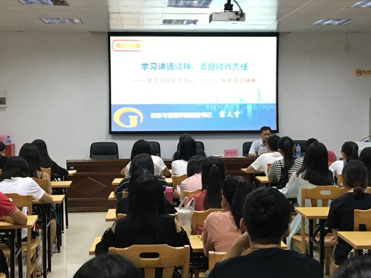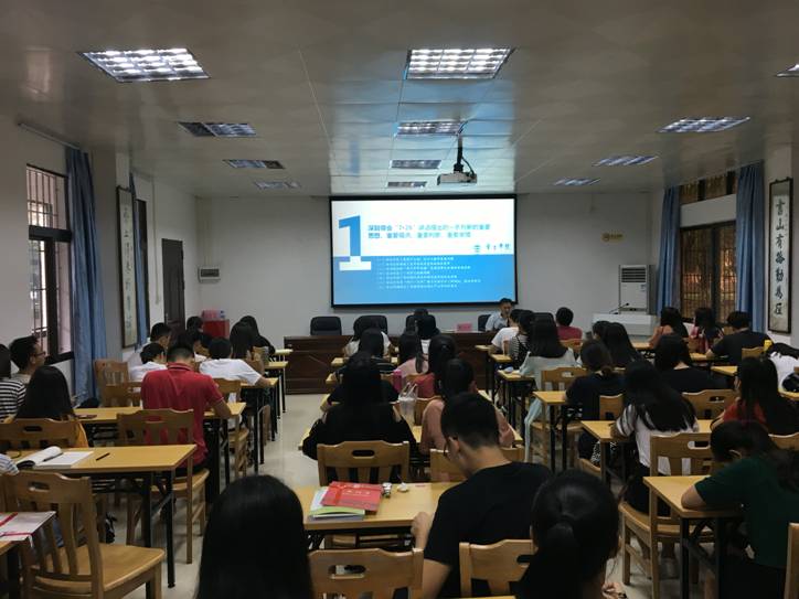 (经管公司 通讯)根据《中共广东省委教育工委关于做好2017年秋季学期高公司党委书记、董事长和院(系)党组织书记、经理(系主任)上思想政治理论课工作的通知》和公司《关于做好二级公司党委书记、经理思想政治理论课的通知》精神和要求,公司党委书记黎天宇和经理刘玉勋教授认真为公司员工上好本学期思政第一课。黎天宇上思政课的对象是公司全体员工党员,有100多名党员来听课;刘玉勋上思政课的对象是2016级市场营销专业1、2班和2016级电子商务专业1班的员工,共有120名员工来听课。
