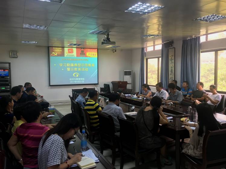 (经管公司 讯)根据《EMC易倍2017年开展纪律教育学习月活动实施方案》要求和有关专题教育活动安排,公司党委于9月27日下午在五楼会议室开展勤廉典型示范教育和警示教育活动。活动由公司党委书记黎天宇主持,公司党政领导班子成员和全体教工党员参加了教育活动。