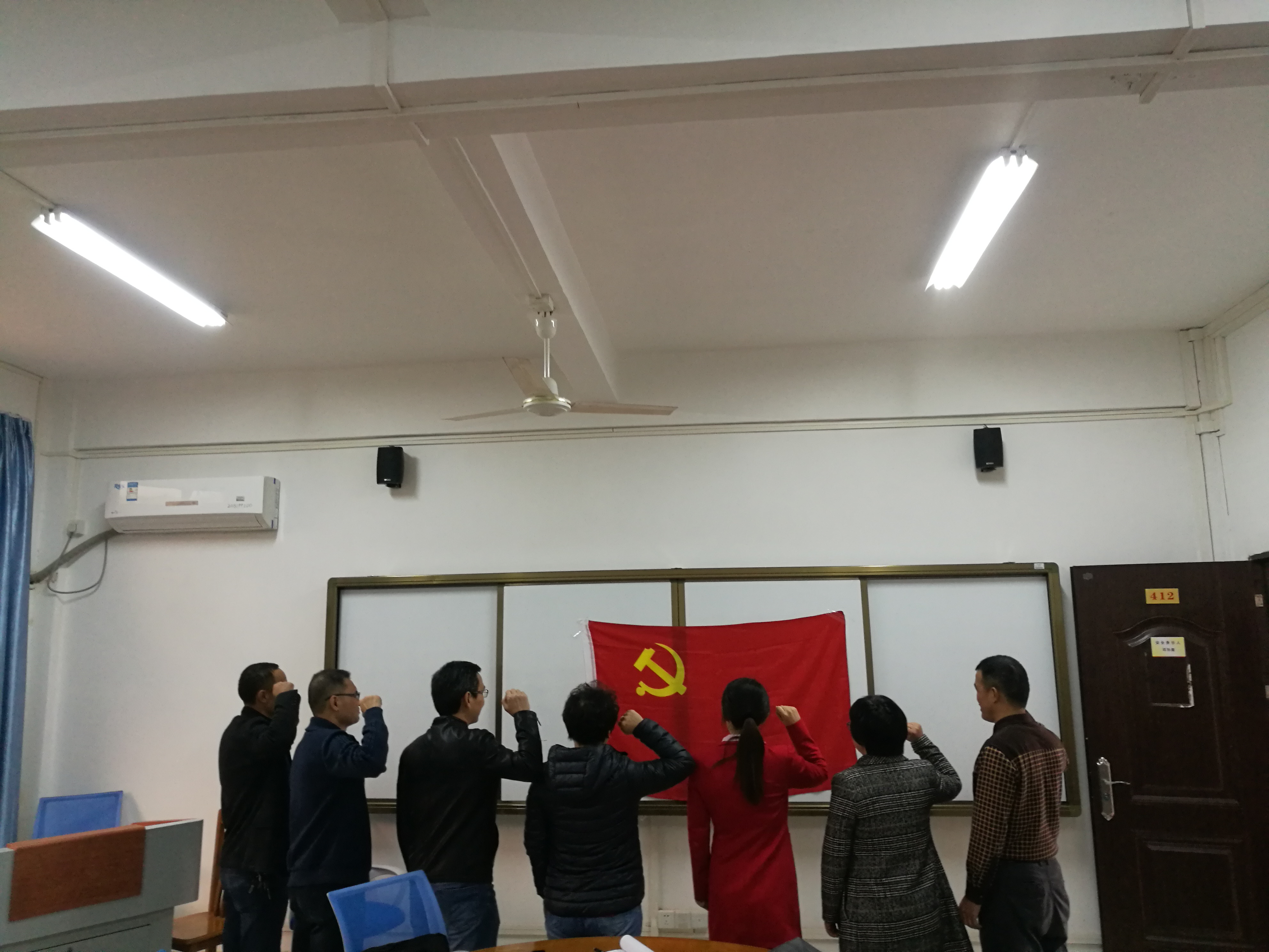 活动中,支部党员首先面向党旗,重温入党誓词,通过重温入党誓词,希望党员不忘初心,牢记使命,为实现中华民族伟大复兴做出应有的贡献。重温誓词后,支部书记与全体党员对党的十九大党章修正案进行了学习,让党员深入了解党的十九大对党章进行修改的必要性和深刻意义。最后,在支部书记的带头下,全体党员轮流诵读新党章,并在诵读结束后组织大家进行了专题讨论。在讨论时,大家畅所欲言,或谈学习心得体会,或结合自己工作实际,谈教工党员在新时代如何发挥先锋模范作用,带头落实立德树人根本任务,积极推动公司转型发展、创新强校、申硕工程、评估整改、学科专业建设、团队队伍建设等工作,为公司各项事业的发展作出就有的贡献。