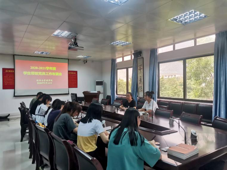 [经管公司 讯]为做好新生入学准备工作,加强员工带班党员团队建设,进一步提高带班党员团队专业化程度。EMC易倍于2020年9月14日中午在公司办公楼501会议室组织召开2020-2021学年度员工带班党员工作布置会。出席本次会议的有公司党委副书记颜春萍、专职组织员王嘉、2020级员工带班党员。