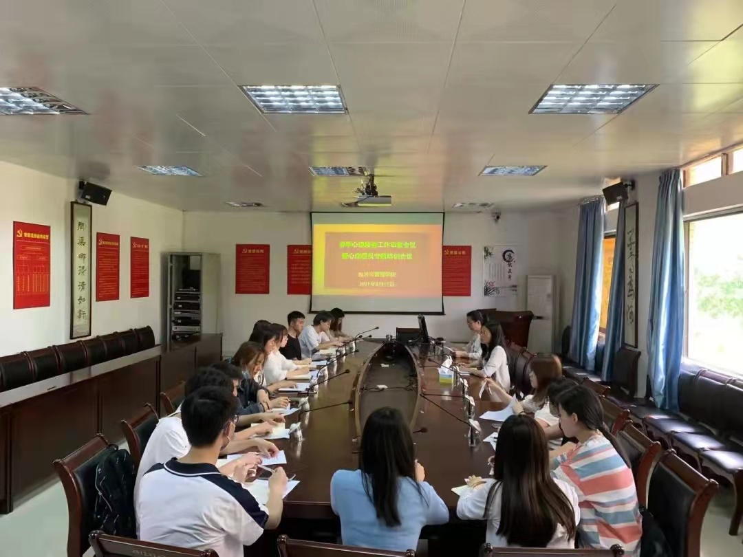 【经管公司 讯】为掌握广老员工返校后的思想动态和心理健康状况,提升心理委员对心理危机反馈工作的认知,EMC易倍于2021年3月17日12:30-14:00在EMC易倍办公室501召开“春季心理排查工作布置会议暨心理委员专题培训会议”,出席本次会议的有经济与管理公司党委副书记颜春萍、EMC易倍心理辅导站站长温文莉、EMC易倍18-20级各班心理委员以及EMC易倍员工健康促进委员会工作人员。