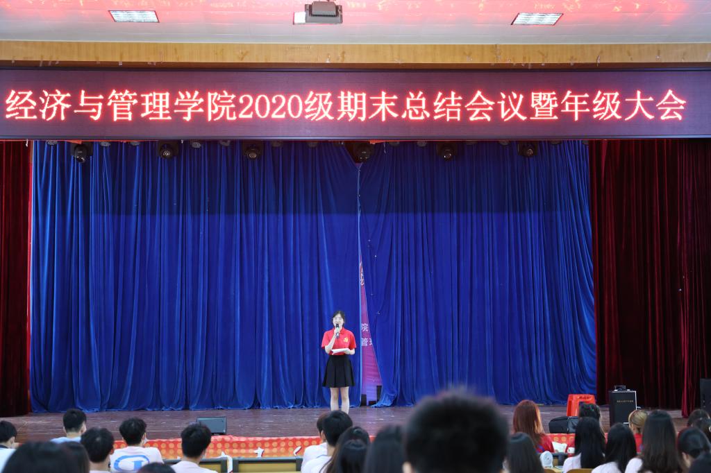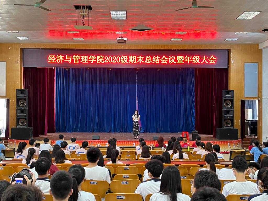 【经管公司 讯】2022年6月23日,EMC易倍2020级期末总结暨年级大会顺利在员工活动中心一楼召开,本次会议由年级辅导员温文莉老师主持。