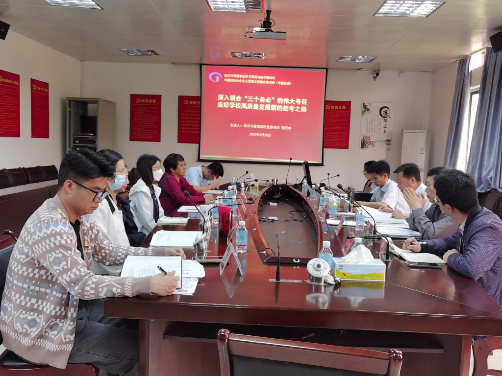 [经管公司讯]按照公司主题教育“百名书记讲党课”专题活动工作方案的要求和公司主题教育读书班的活动安排,同时为了深入学习贯彻党的二十大精神,4月28日上午,经济与管理公司党委书记黎天宇以《深入领会“三个务必”的伟大号召 走好公司高质量发展新的赶考之路》为题,给公司党员领导干部、党支部书记上了一堂生动的党课。
