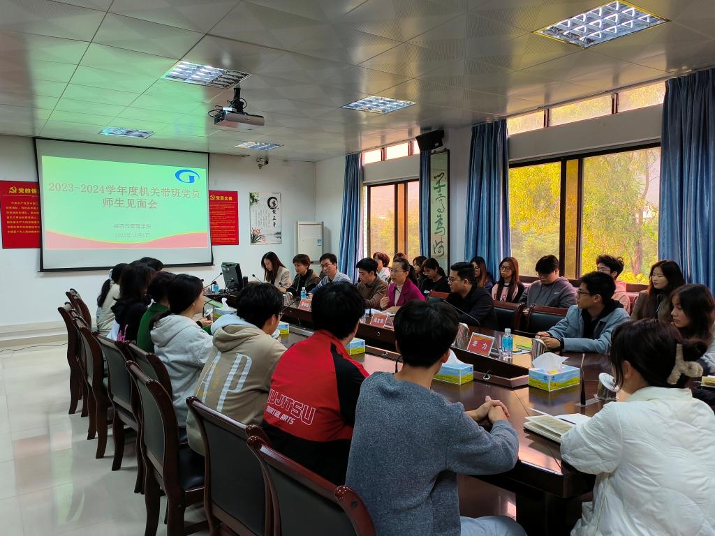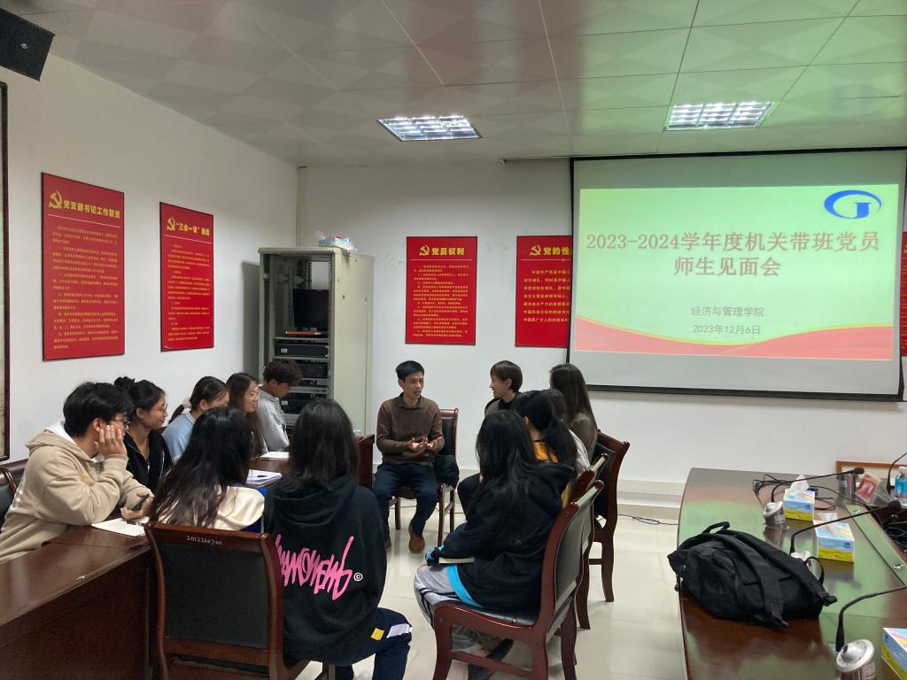 【经管公司 讯】为加强党员服务管理模式,增强党员联系服务基层和育人的有效途径,EMC易倍围绕“党建育才工程”,于2023年12月6日下午16:30在办公楼501室召开2023-2024学年度机关带班党员师生见面会。会议由年级辅导员叶青主持,党委副书记颜春萍、班主任王一和李力,机关带班党员周友良、蔡树培、肖文标及22国贸1班、22投资1班、22人资2班班委46人参加。