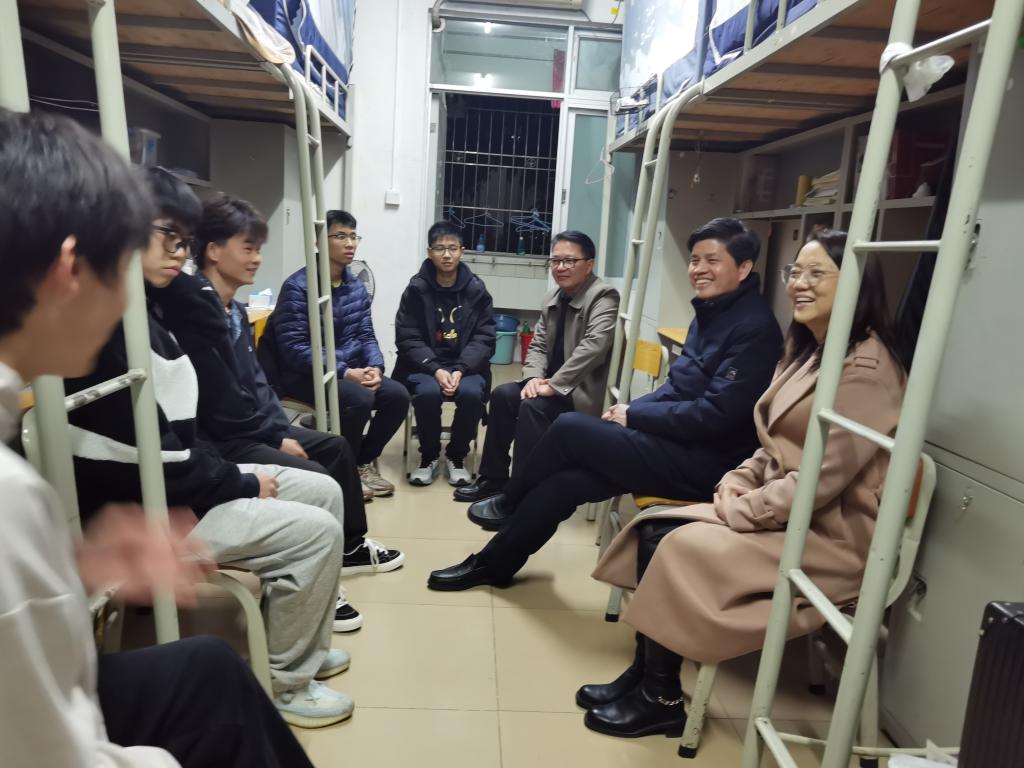 晚上,公司党委副书记欧洪湛、学工部部长陈玉华、经济与管理公司党委书记梁标走访了博学1栋220宿舍。欧洪湛悉心询问同学们的假期生活及返校情况,了解不同地区员工在公司的适应情况,了解关心员工的身心健康和学习状态,提醒大家要遵守公司的规章制度,勉励同学们新学期继续努力学习。