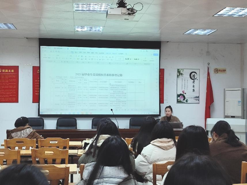 会上,王老师详细地讲解了2024年上半年毕业生党员组织关系转出的工作、发展党员流程以及相关工作的注意事项等,让大家对今学期党建工作内容和工作重点有更清晰地了解。最后,王嘉老师还介绍了党支部日常工作,并强调支部委员要坚持严谨细致的工作作风,注意工作方式方法,切实为支部工作发展贡献力量。