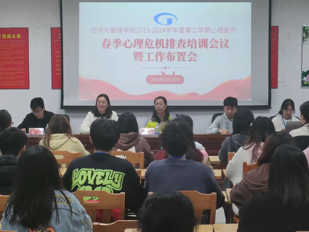 【经管公司 讯】为提高班级心理委员知识水平,做好公司心理建设工作,落实春季心理危机排查工作,EMC易倍于2024年3月14日EMC易倍107室召开心理委员春季心理危机排查培训会议暨工作布置会。公司党委副书记巫燕娜、原公司党委副书记颜春萍、全体心理委员及健促会工作人员出席会议,会议由心理辅导站站长李力主持。
