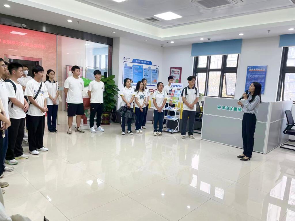 在太平洋保险公司工作人员的带领下,公司师生参观营业大厅、农险展示区、办公职场等区域,全方位了解公司的业务运营和企业文化。刘汝鹏对公司的整体情况、核心价值、经营理念、党建引领等方面进行介绍,并深入解读公司的部门组织架构、岗位职责,明晰员工职业规划,鼓励员工积极参加专业实习。周长锋博士在活动中介绍公司人才培养模式,强调校企合作的重要性,展望与太平洋保险公司深化合作的未来。