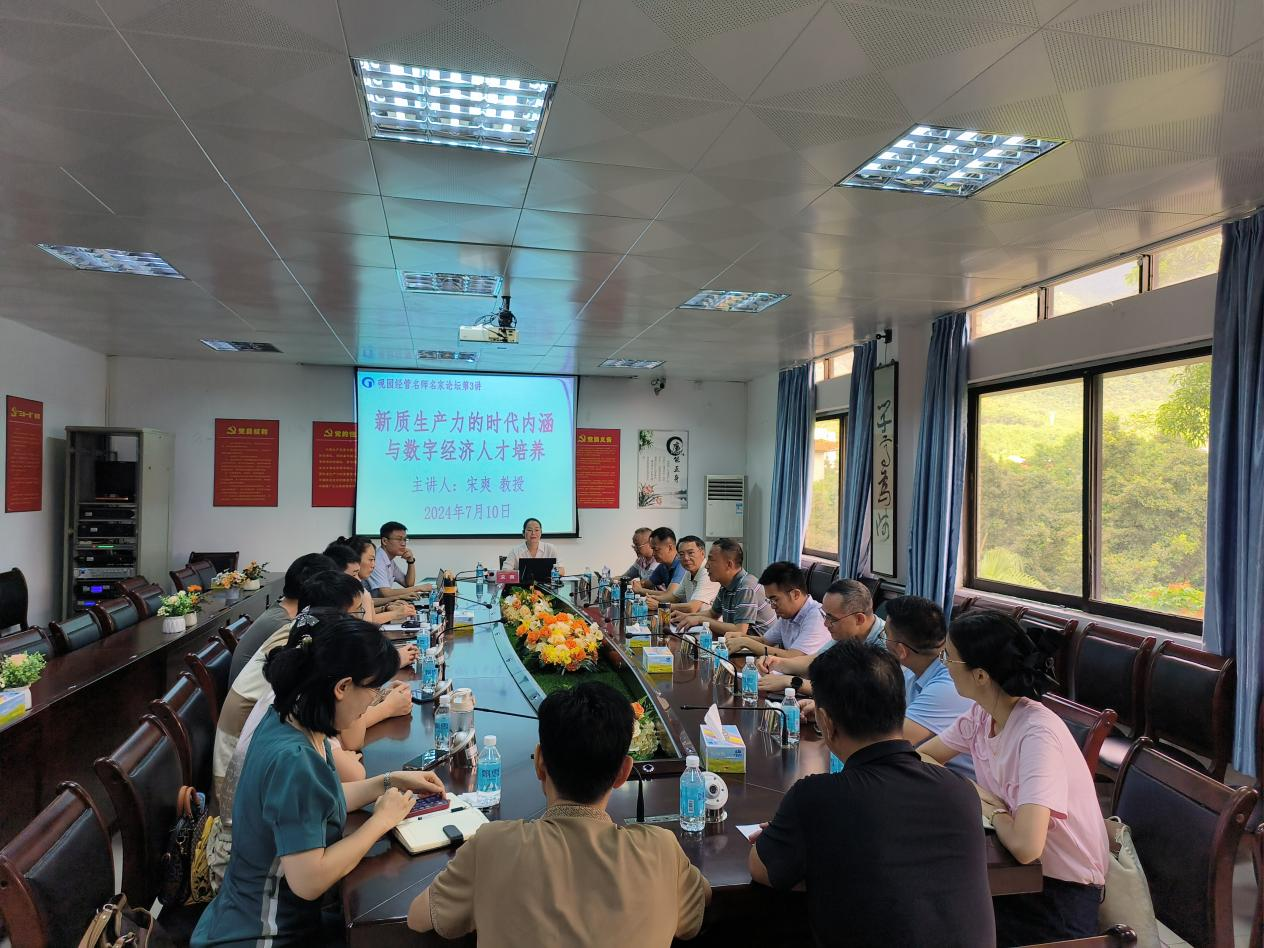 【经管公司 讯】7月10日,EMC易倍“砚园经管名师名家论坛”(第3讲)在公司501会议室成功举办。为深入学习贯彻习近平总书记关于新质生产力的重要论述精神,推进公司数字经济学科和专业建设,公司特邀西藏民族大学西藏数字经济研究所所长宋爽教授作题为《新质生产力的时代内涵与数字经济人才培养》的学术报告。公司党委书记梁标、经理李华军、副经理雷洪以及16名中青年骨干教师参加了报告会,会议由李华军经理主持。