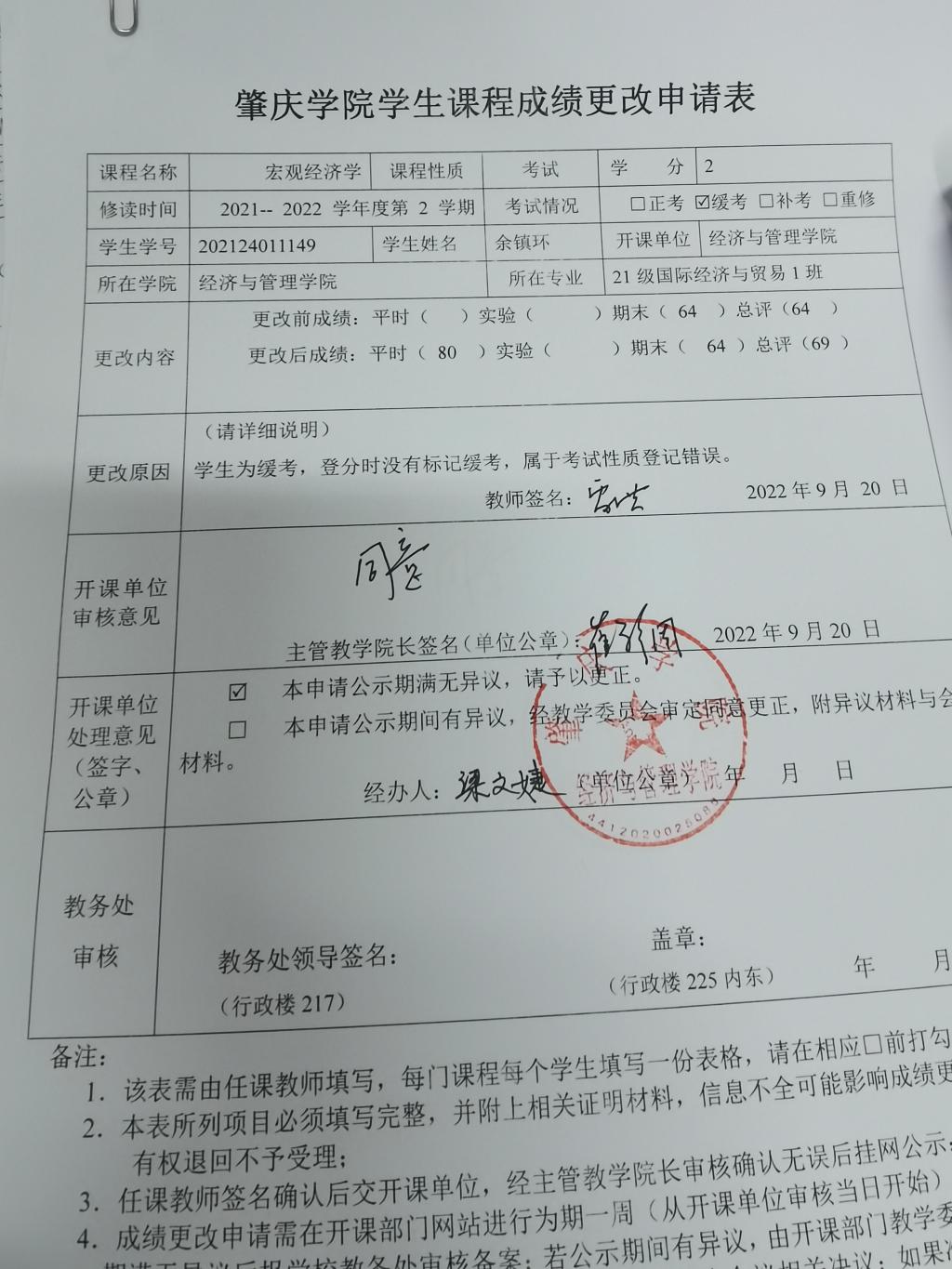 EMC易倍员工课程成绩更改申请表公示(EMC易倍余镇环)