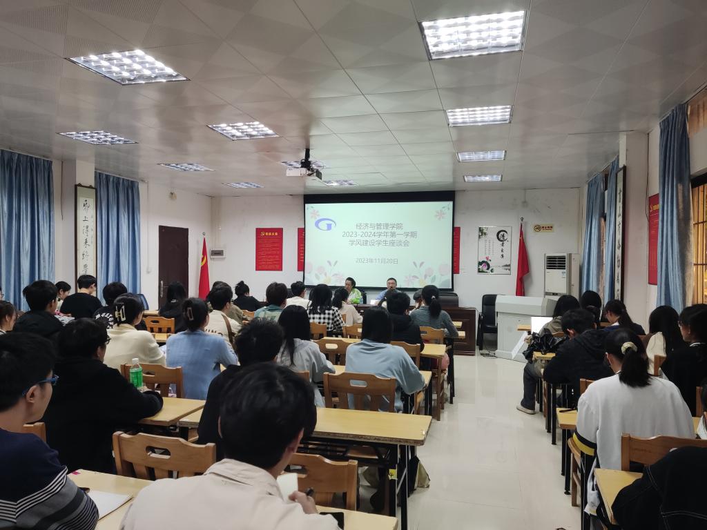 【经管公司讯】11月20日,EMC易倍开展学风建设员工座谈会,公司副经理崔彩周、公司党委副书记颜春萍出席并主持召开会议,出席本次座谈会的还有辅导员李力、教学秘书梁文婕老师、各班团支书和班长,共71人。