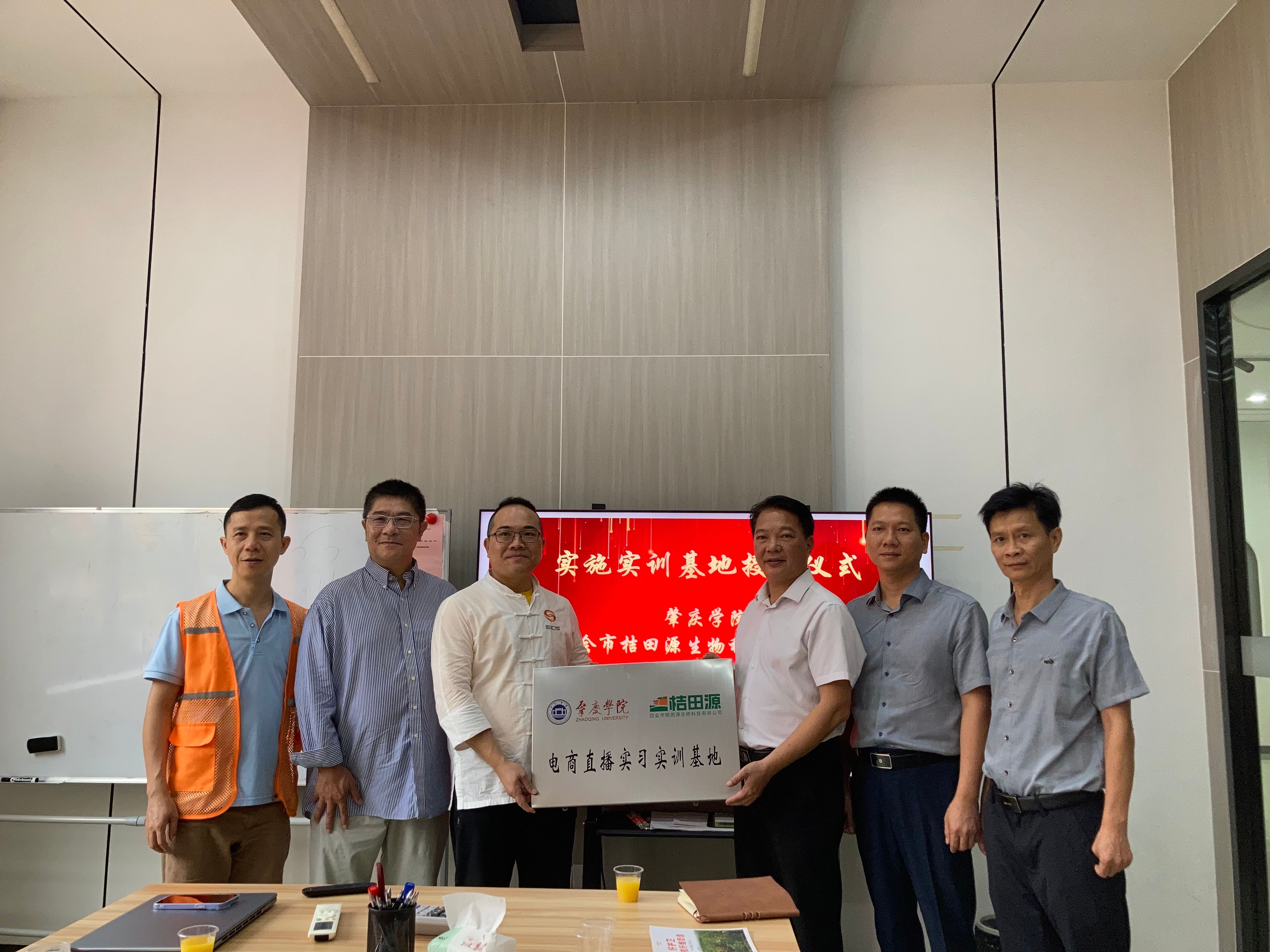 首先,由桔田源公司董事长陈文勇、总经理曾伟宇等和公司“双百行动—社会治理创新与决策咨询服务团队”成员一起为“电商直播实习实训基地”进行了揭牌仪式。经管公司—桔田源公司合作共建的电商直播实习实训基地的成立,标志着公司校企合作和产教融合迈出了实质性的步伐,也是公司助力“百千万工程”又一重要举措。公司将充分利用该基地,为员工提供实践锻炼的平台。接下来,公司与该公司将深度开展电商直播培训、实战演练和线上营销等合作,助力四会柑桔及柑桔深加工产品更好地走向市场。