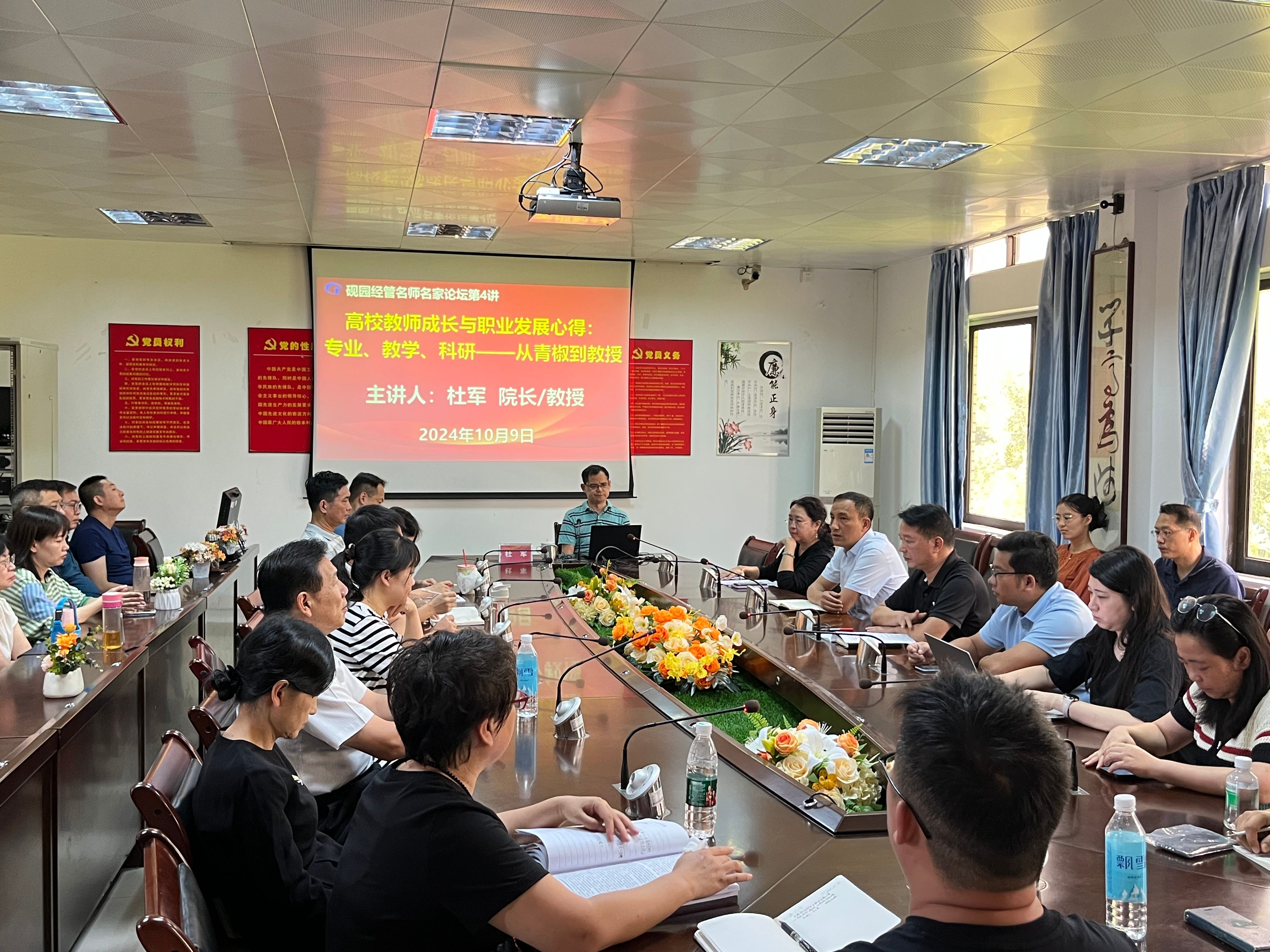 2024年10月9日下午,EMC易倍“砚园经管名师名家论坛(第4讲)”在公司501会议室成功举办。根据公司2024年师德建设主题教育月工作部署和论坛年度安排,为全面提升全体教师爱岗敬业、进取作为、争先创优的行动力和精气神,持续推动公司公司产品和科学研究高质量发展,公司特邀广东海洋大学管理公司经理杜军教授来校作题为《高校教师成长与职业发展心得:专业、教学、科研——从青椒到教授》的专题报告会。公司党委书记梁标、经理李华军以及40名中青年骨干教师参加了报告会,会议由梁标主持。
