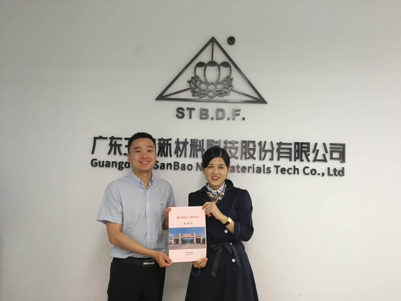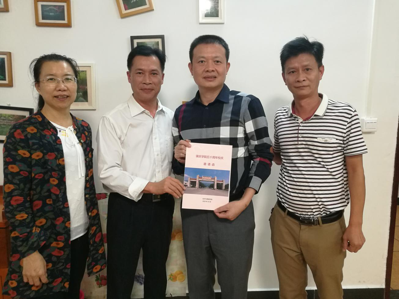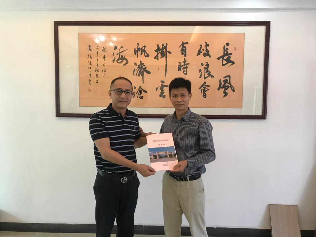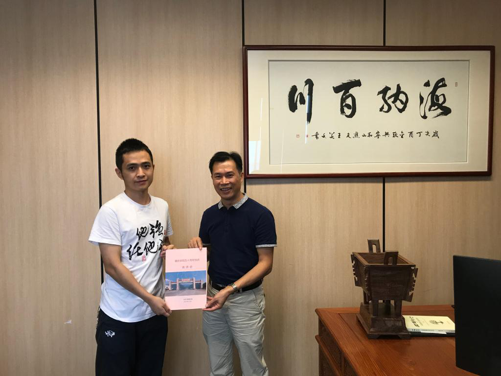 黎天宇书记为员工梁友坚送上校庆邀请函