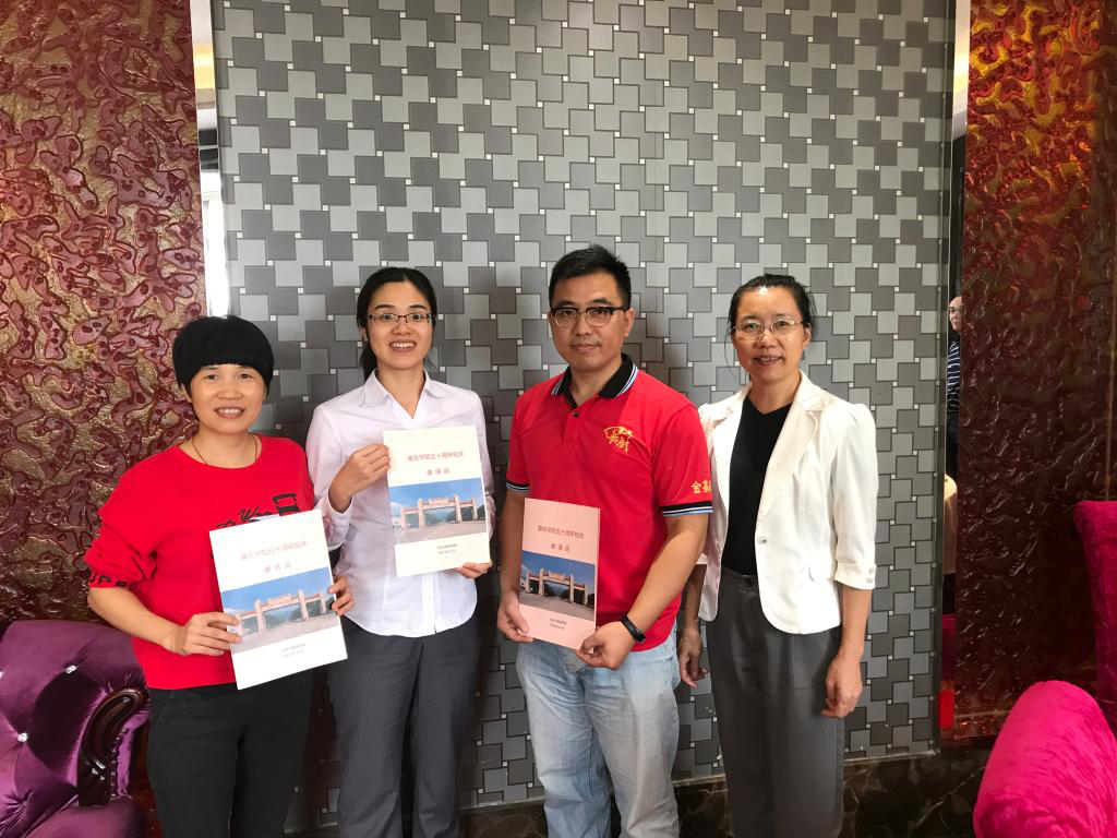 颜春萍副书记为员工黎倩、余文深、黄建楚送上校庆邀请函
