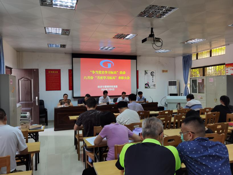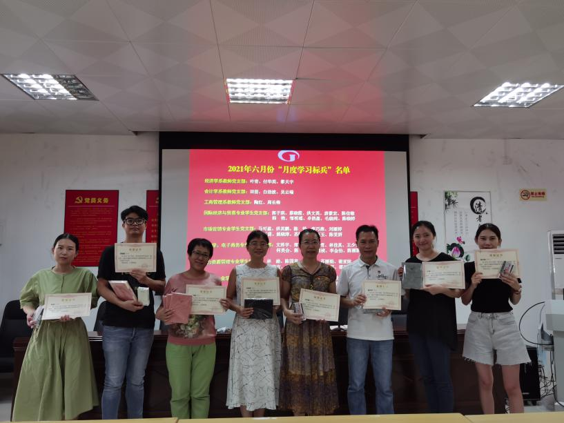 [经管公司讯]2021年7月9日下午,EMC易倍召开“争当党史学习标兵”六月份“月度学习标兵”表彰大会,对荣获六月份“月度学习标兵”的师生党员及入党积极分子进行了表彰。出席本次大会的有公司党委书记黎天宇、公司经理刘玉勋、公司党委副书记颜春萍、公司副经理雷洪、公司副经理崔彩周、各支部书记和教师党员。