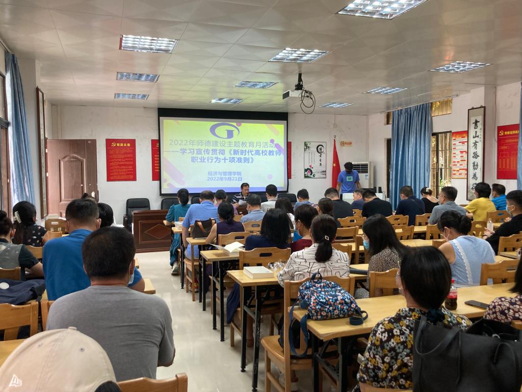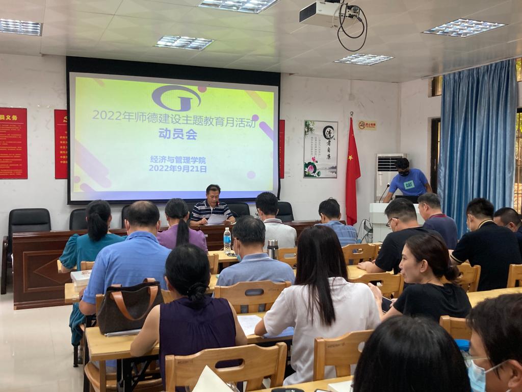 [经管公司讯]为进一步加强师德师风建设,不断增强教师的责任感、使命感、荣誉感,规范职业行为,明确师德底线,引导广大教师努力成为有理想信念、有道德情操、有扎实学识、有仁爱之心的“四有”好老师,全面提升公司教职工的思想政治素质和职业道德水平,根据公司党委办《关于印发<EMC易倍2022 年师德建设主题教育月活动方案>的通知》(肇学委办〔2022〕30号)要求,公司于2022年9月21日下午在公司107会议室开展了师德建设主题教育月活动动员会和系列主题教育活动,动员会和教育活动由黎天宇书记主持,公司教师约70人参加了活动。